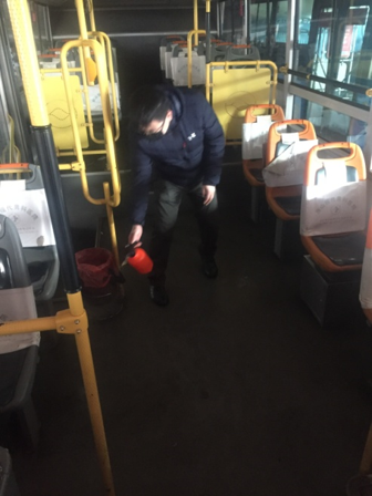 這群公交人是調(diào)度員、是例保員、是修理工、是保潔員,他們都是公交行業(yè)中平凡的一員,但是在疫情面前做著不平凡的工作。在公交停駛時間,他們默默堅守著自己的崗位,奮戰(zhàn)在抗擊疫情的最前線。調(diào)度員每日堅守在調(diào)度室,解答過往乘客的問詢,還承擔(dān)起對調(diào)度室和駕駛員休息室每日進(jìn)消毒工作。例保員每天到崗檢查停駛車輛狀況,完成對停駛車輛的能源補(bǔ)給,做好車輛養(yǎng)護(hù)工作,保證車輛能夠隨時上線營運。保潔人員定期對車輛進(jìn)行清潔和消毒工作,保證車內(nèi)外衛(wèi)生。修理工則利用車輛停駛的這段時間,加班加點對故障車輛進(jìn)行維修維護(hù)。