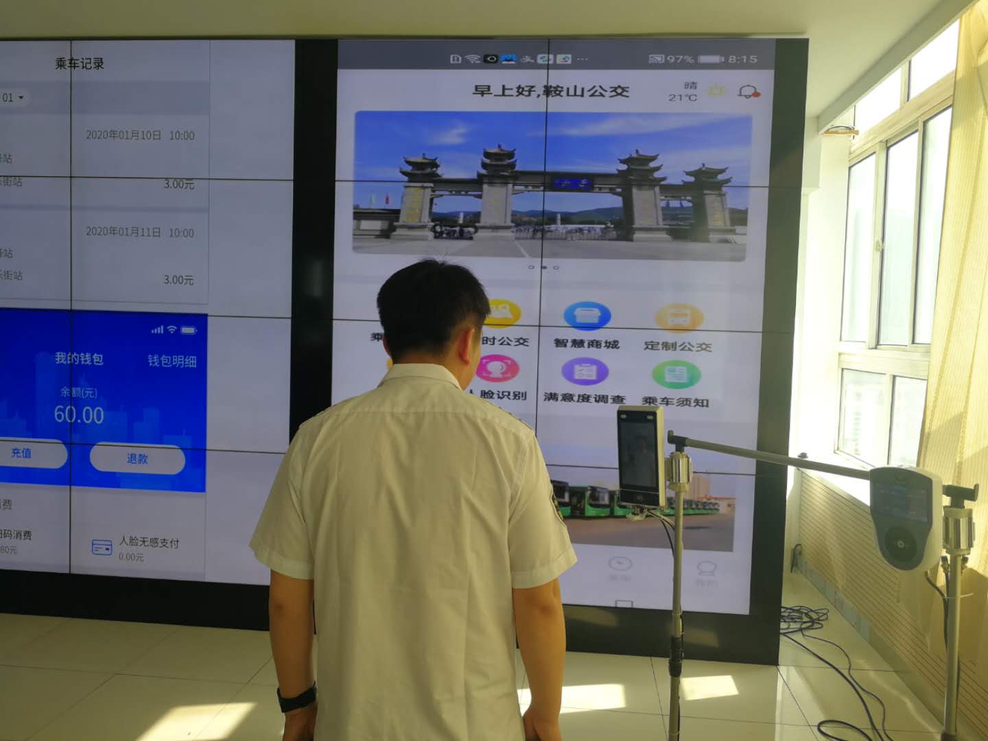 隨著全市“公交都市”創(chuàng)建工作穩(wěn)步推進,鞍山交運集團推出智慧公交APP平臺,使鞍山市成為全省首個擁有集線上營業(yè)廳、掃碼乘車、線路查詢、定制公交,滿意度調查、尋物啟事、智慧商城、人臉識別等8項功能于一體智能乘車系統(tǒng)的城市。實現(xiàn)普通IC卡與智慧公交APP自由高效并行,引領全省公交行業(yè)智慧發(fā)展,使鞍山公交智能化水平躋身全國先進行列。此APP電子公交卡與普通公交卡享受同等優(yōu)惠,普通卡押金20元可以退還,電子卡開卡費用10元,不予退款,乘客可自由選擇。