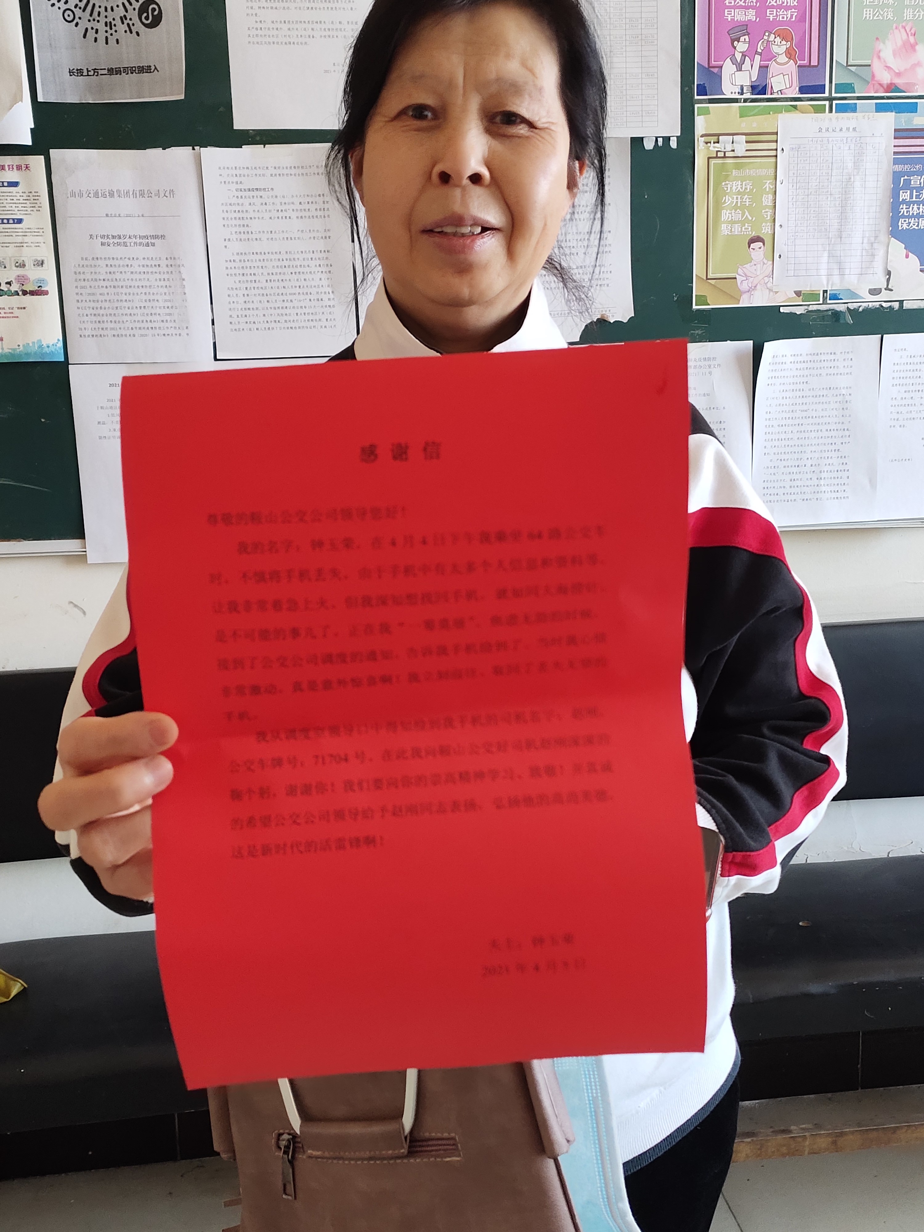 “如果手機(jī)丟失了會(huì)很麻煩,幸好碰到你這樣好司機(jī)……”市民鐘女士對(duì)交運(yùn)集團(tuán)第三汽車(chē)分公司客運(yùn)七隊(duì)拾金不昧的優(yōu)秀駕駛員趙剛再三表示感謝。