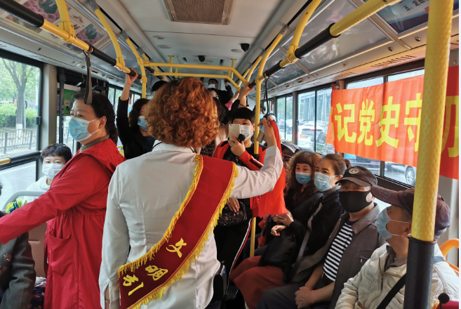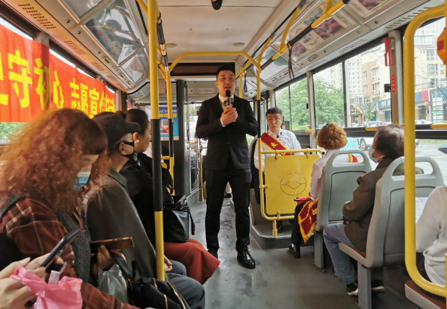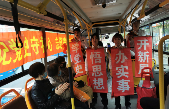 為充分發(fā)揮公交車流動性強、宣傳面廣的優(yōu)勢,交運集團(tuán)的車廂文藝演出將繼續(xù)走進(jìn)各條公交線路,并在部分公交車廂懸掛國旗、黨旗,張貼黨史故事,做到學(xué)史明理、學(xué)史增信、學(xué)史崇德、學(xué)史力行,以昂揚姿態(tài)奮力開啟全面建設(shè)社會主義現(xiàn)代化國家新征程,以優(yōu)異成績迎接建黨一百周年。